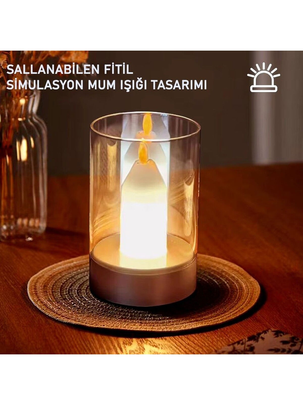 Masa Lambası 3 Renk Şarjlı Dimmerli 25x11mm Mum Efektli (Tokyo) (30ad)