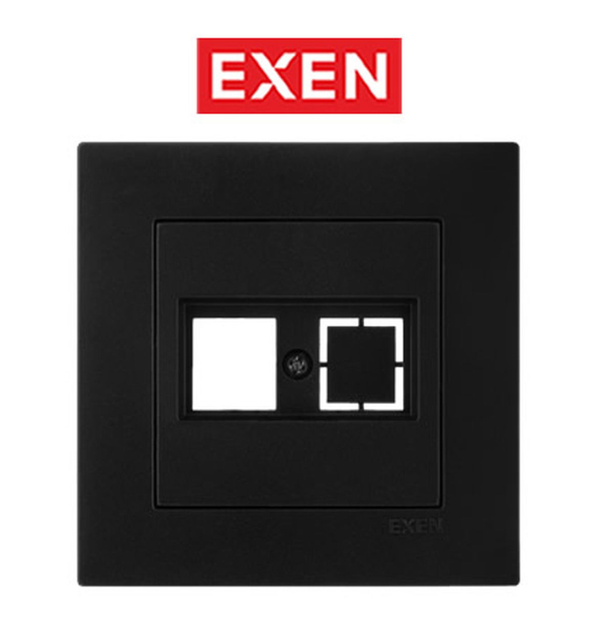 Exen Metalik Siyah Modül+Kapak | Data Priz Jaksız (12kt/60kl)