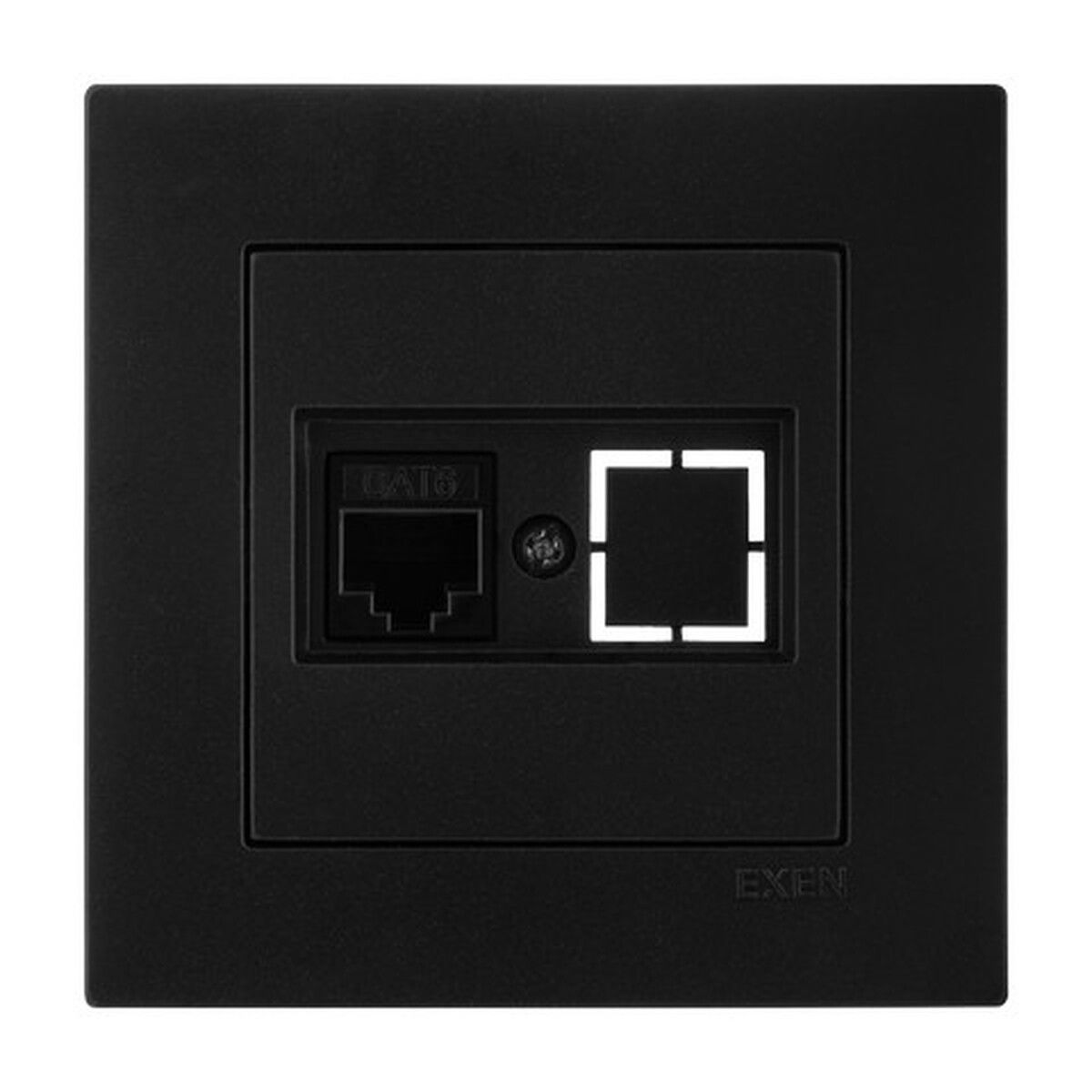 Exen Metalik Siyah Modül+Kapak | Tekli Data Prizi Cat6